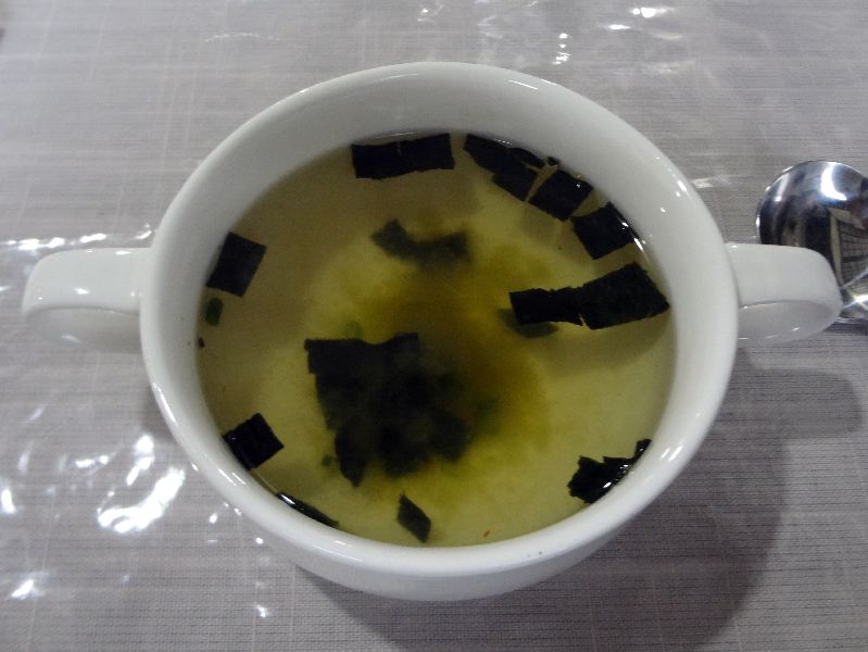 レモンポークソテーを頼みましたが,スープには弓削海苔が入ってました。