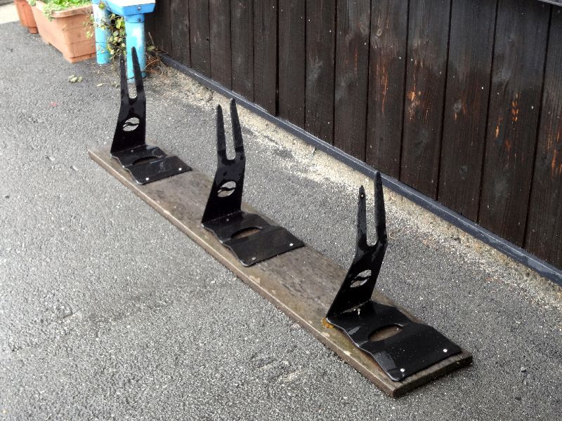 しまでカフェの前には,自転車のスタンドが。短管パイプのスタンドは,よくみかけますが,おしゃれなスタンドですね。