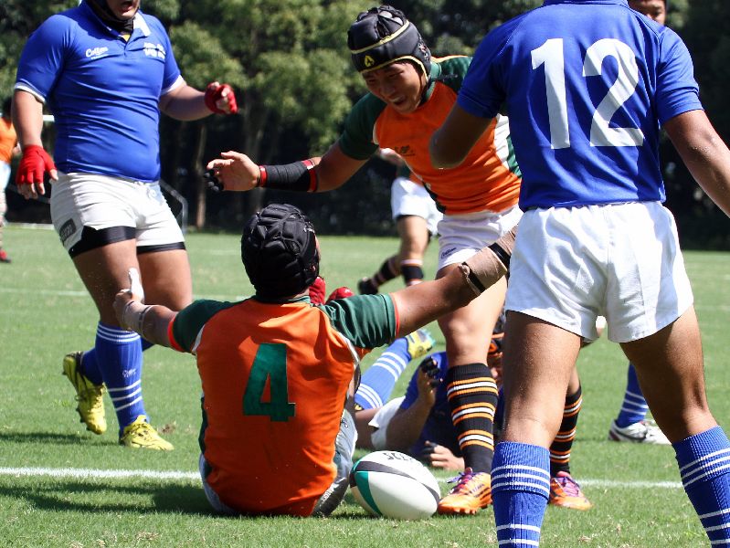 上田がインゴールに飛び込んで先制トライ。7-0