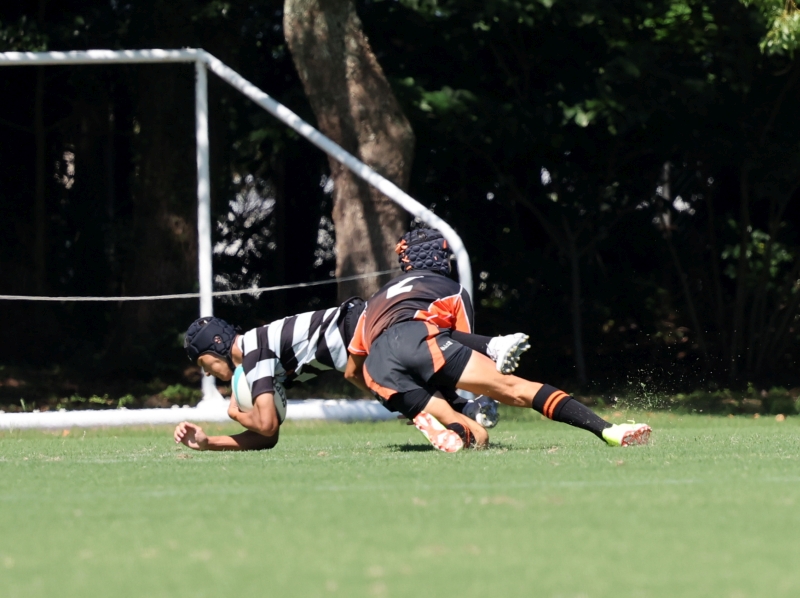 前半6分 松商10番がトライ 10-14で前半終了