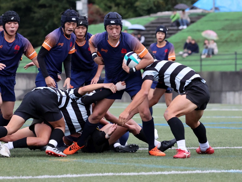 前半20分 東予5番佐山がゴール前にせまり,最後は7番倉橋がトライ 17-6