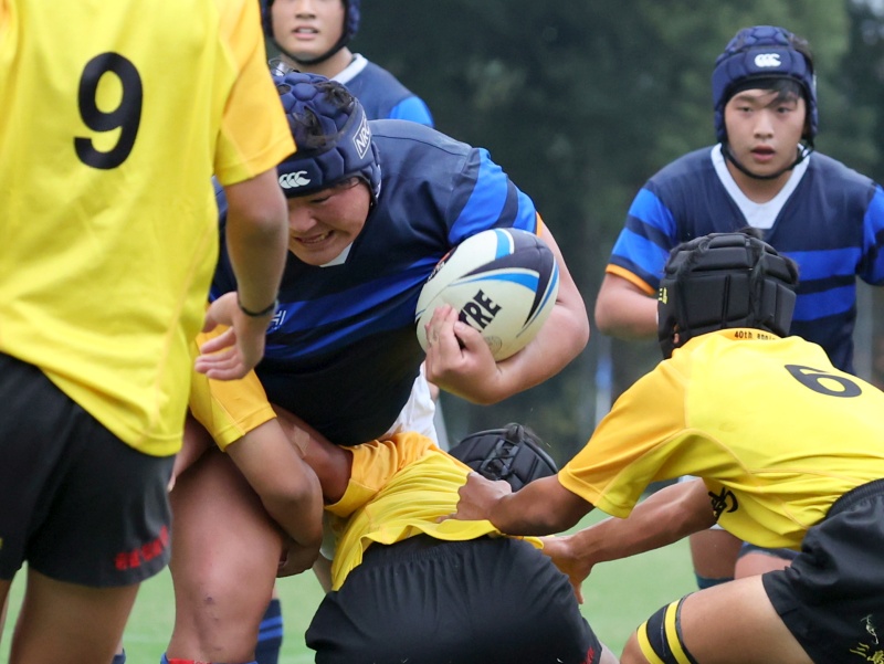 前半16分 ゴール前PKから新田3番山本がトライ17-7