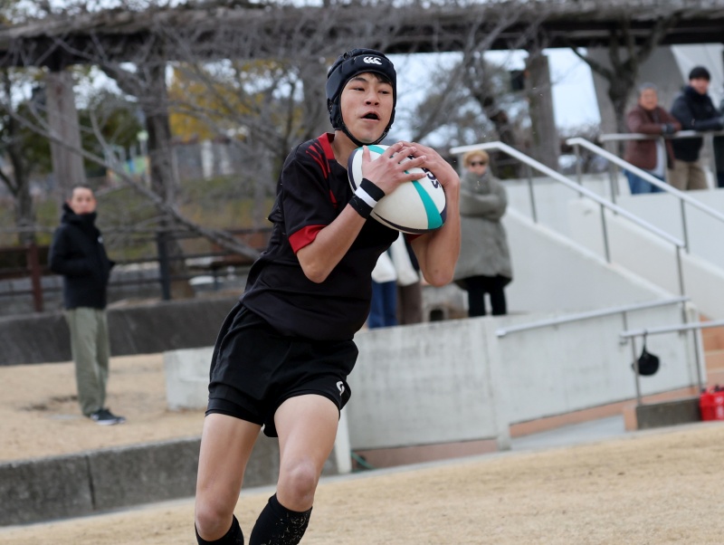 バウンドするボールを14番工藤が確保してトライ。5-5に