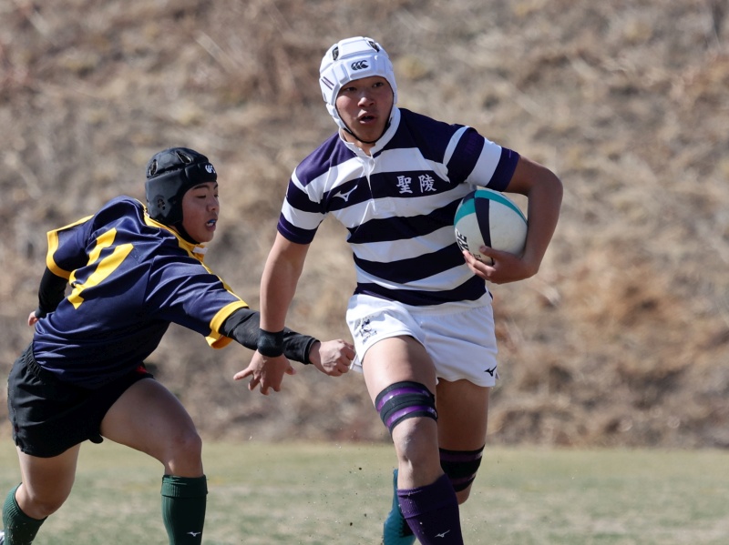 香川のキックオフでゲーム開始。前半3分,聖陵5番宮本がトライ。阿塚のゴールも成功し7-0
