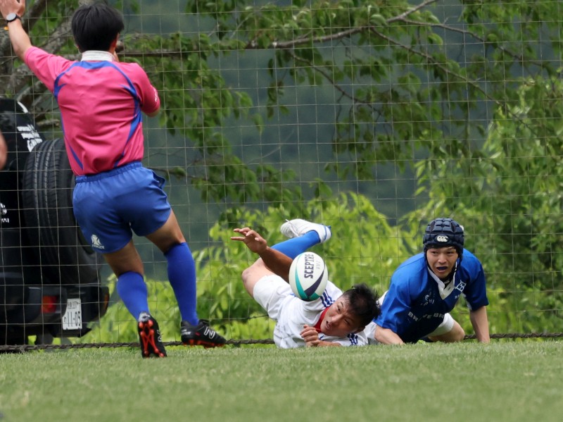 前半30分 インゴールへのパントを高知が押さえてトライ 5-19