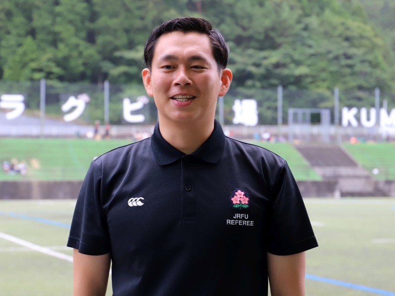 講師の廣瀬さんは就職のために愛媛から大阪に移って5年目,9月で30歳。現在,日本協会のA級レフリーで,花園(高校全国大会)の準決勝のレフリーやリーグワンのディビジョン1のARも担当されたとのこと。