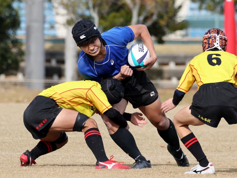 このあと,三島10番がトライして14-0