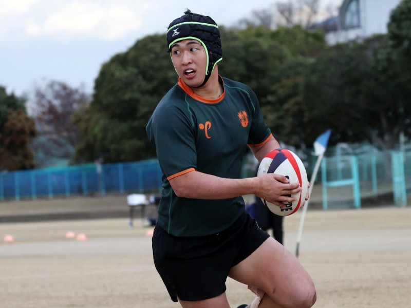 ラックから左にだして,8番がトライ ゴールも決まって7-5と逆転 前半はこのまま終了